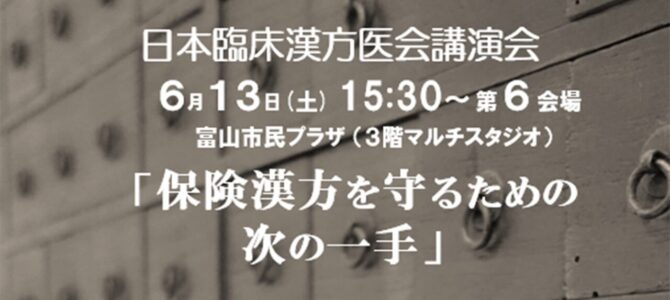 第76回日本東洋医学会学術総会内で6/13に富山市民プラザで開催いたします。 …