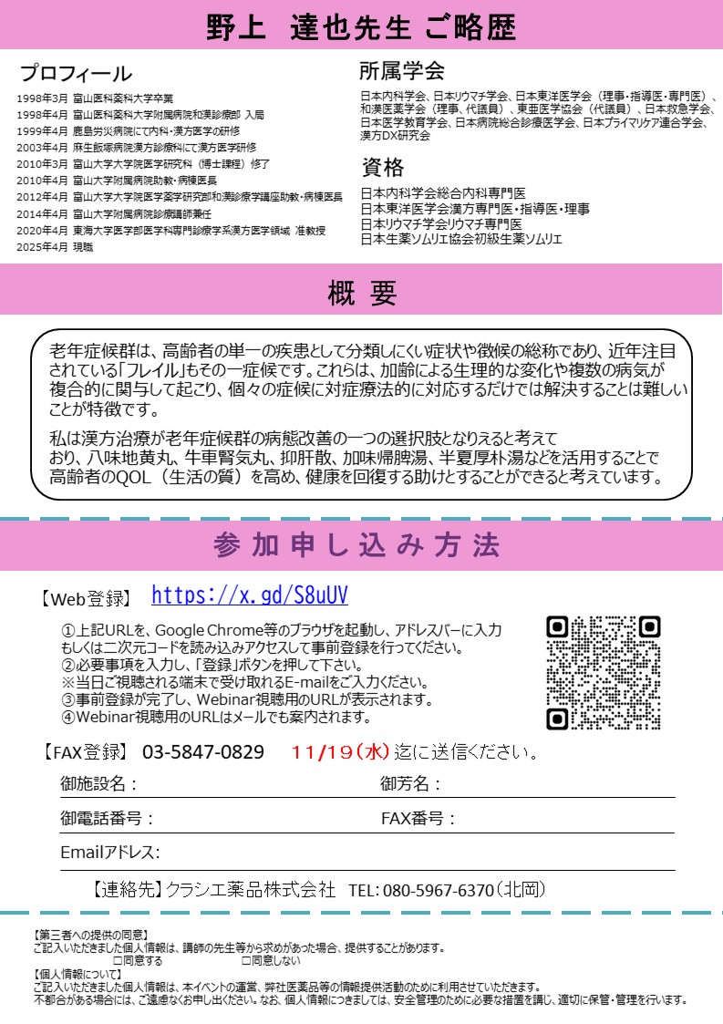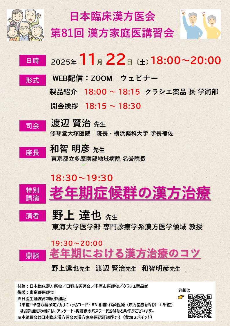 🔶共催:クラシエ薬品株式会社、日本臨床漢方医会