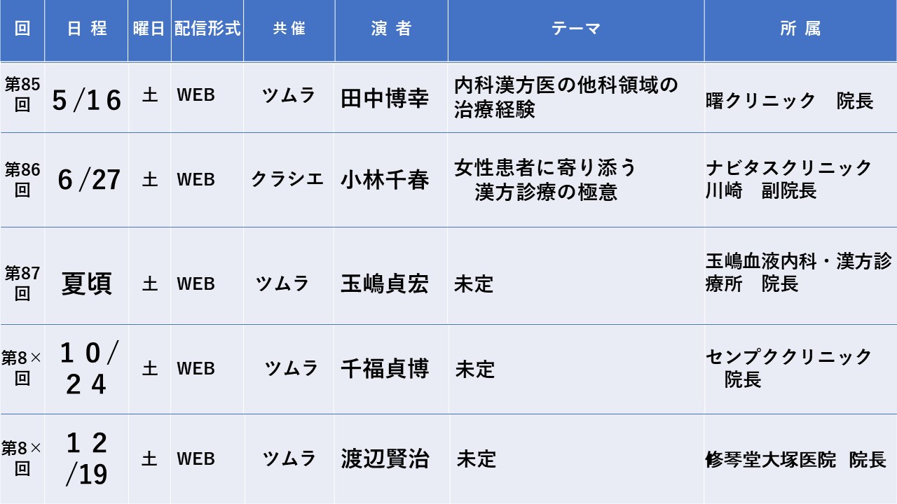 2026年度 漢方家庭医講習会 開催予定日